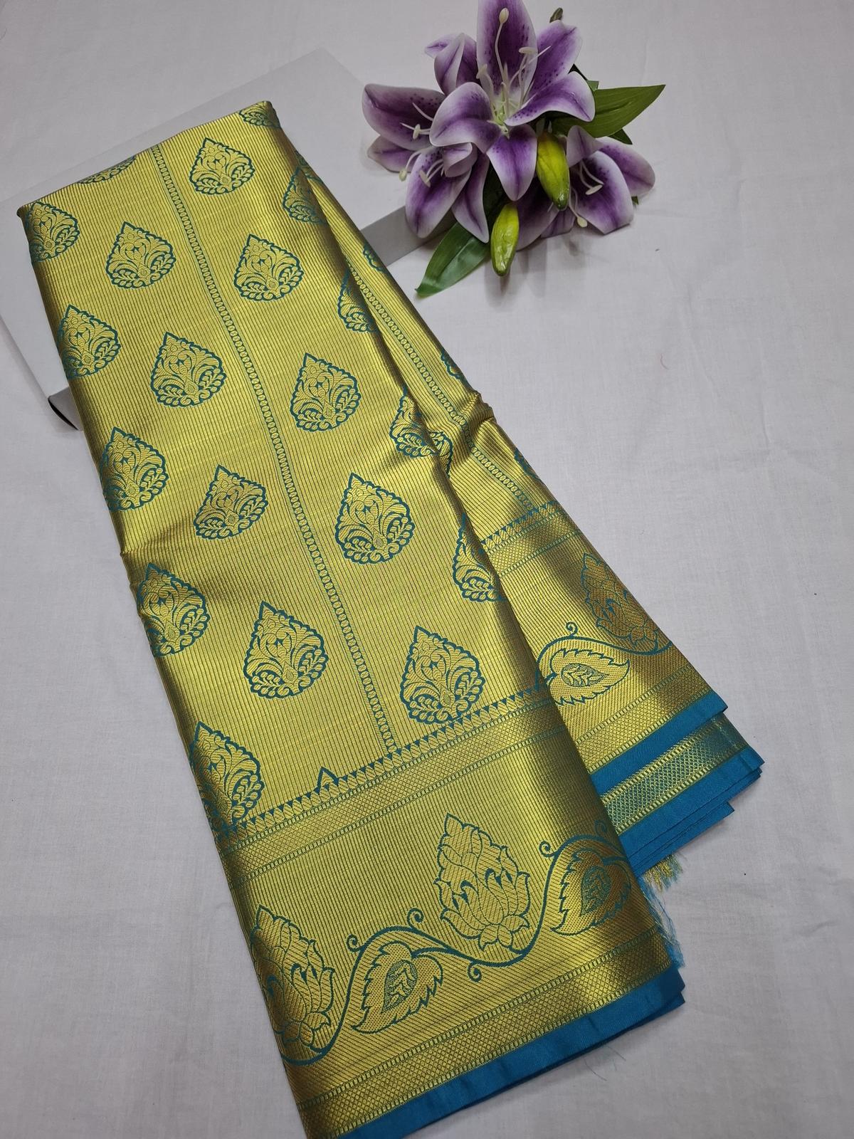 Discover the luxurious feel and captivating allure of our Premium Weave Tissue Silk Sarees. These sarees are distinguished by their grand weaving, featuring intricate full zari work that shimmers with every movement. The striking contrast borders add a touch of modern sophistication, creating a visual symphony that’s both classic and contemporary.